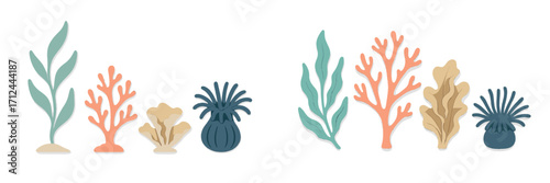 Colorful seaweed and coral reef designs for marine-themed decor and artwork