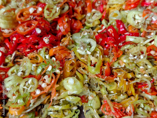 Colorful Sliced Chili Peppers Background – Spicy Food Texture