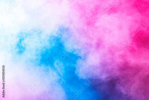 Colorful smoke in shades of pink, blue, and white creates dreamy atmosphere
