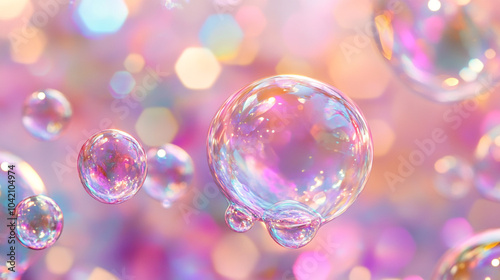 Colorful soap bubbles floating gracefully in bright sunlight with a soft, blurred background