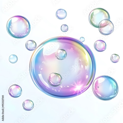 Colorful soap bubbles isolated on a white background, vector illustration design with pastel rainbow colors
