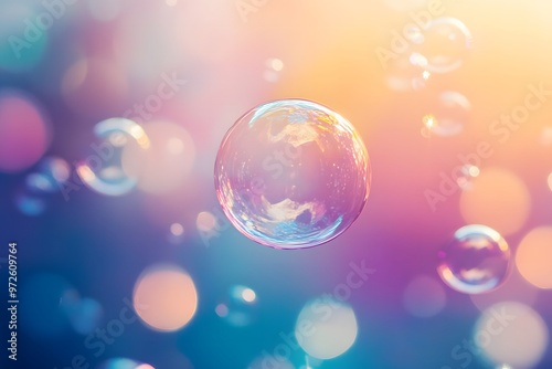 Colorful soap bubbles reflecting light