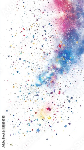 Colorful Sparkling Stars and Cosmic Dust on a White Background