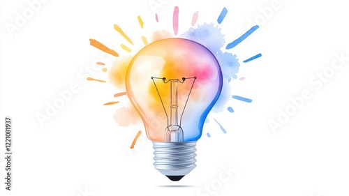 Colorful splash of paint surrounding a bright light bulb creating an artistic and vibrant visual effect 120 chars