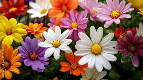 Colorful Spring Flowers in Bloom with Various Petals and Bright Colors