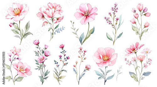 Colorful spring flowers, Set of watercolor flowers, Clipart watercolor flowers