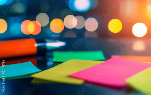 sticky, note, colourful, pen, workspace, blurred, light, reflective, surface, office, supply, creativity, organisation, bright, colours, stationery, planning, writing, inspiration, productivity, closeup, abstract, bokeh, background, vibrant, yellow, pink, green, orange, blue, modern, design, tool, message, reminder, paper, item, business, school, education, idea, brainstorming, text, desk, collection, creative, motivational, visual