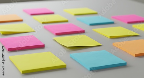 note, colourful, arrangement, row, white, surface, closeup, pink, yellow, blue, orange, pattern, organisation, planning, reminder, office, supply, stationery, adhesive, square, grid, design, texture, background, bright, vibrant, topview, creative, workspace, business, education, memo, message, information, communication, brainstorming, idea, strategy, project, management, teamwork, collaboration, productivity