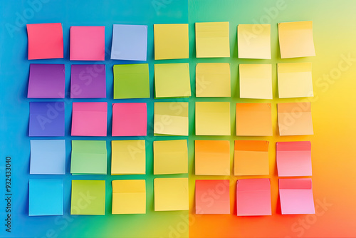 Colorful Sticky Notes Arranged on a Vibrant Gradient Background