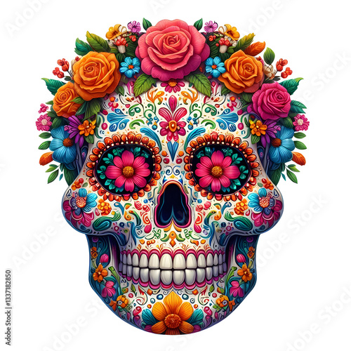Colorful Sugar Skull for Day of the Dead isolated on transparent background