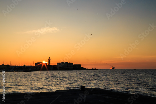 Colorful sunset in front of the city of Trieste