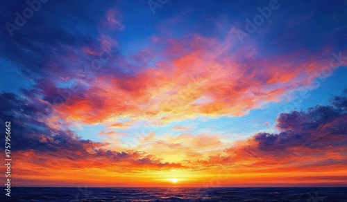 sunset, ocean, sky, cloud, colourful, horizon, calm water, orange, pink, blue, nature, scenic, peaceful, serene, sun, evening, landscape, sunlight, twilight, outdoors, seascape, skyline, water, natural beauty, warm colors, tranquil