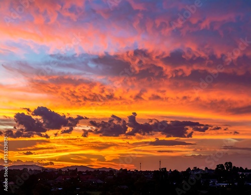 sunset, sky, cloud, colours, orange, red, purple, vibrant, dramatic, city, horizon, twilight, landscape, view, colourful, cloudscape, warm, gold, silhouette, atmosphere, evening, nature