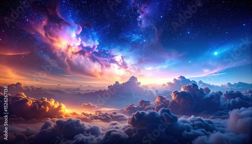 sunset, cloud, sky, star, night, astronomy, galaxy, sunrise, twilight, space, universe, colourful, vibrant, dreamlike, fantasy, imagination, aerial, view, panorama, nature, beautiful, amazing, glowing, starry, cloudscape, gold, hours, mystic, serene, epic