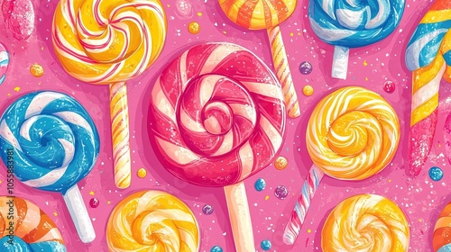 Colorful Swirled Lollipops and Candy Canes Seamless Pattern