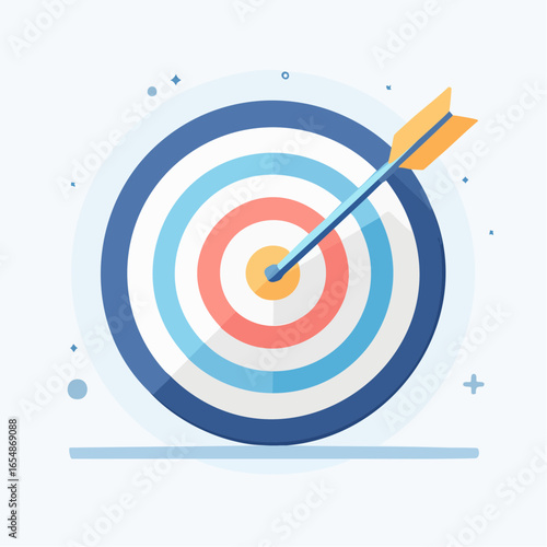 target, arrow, aim, success, sharpened, goal, achievement, business, strategy, planning, colourful, design, graphic, flat, minimalist, simple, icon, blue, orange, red, white, pastel, vector, illustration, geometric, art, digital, pixel, modern, clean