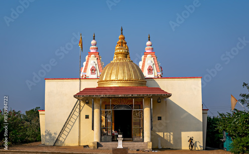 Colorful temple outside the city with clear blue sky background in Kalamb, Yavatmal, India