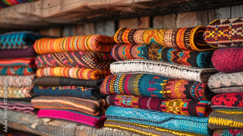 textile, fabric, colourful, pattern, stack, shelf, wooden, texture, artisan, craft, ethnic, material, vibrant, traditional, design, hand-made, display, retail, folded, textile, good, pile, assortment, cotton, woolen, woven, boutique, marketplace, collection, artistic, cultural, fashion, decor, background, surface, shop, interior, rustic, vintage, detailed, variety, folk