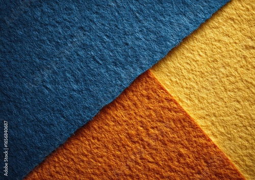texture, abstract, colours, surface, pattern, design, material, rough, fabric, textile, detail, close, macro, vibrant, bright, yellow, blue, orange, paper, felt, craft, art, shape, geometric, diagonal, block, soft, warm, cool, background, graphic, simple, modern, decorative, colourful, triangle, section, division, contrast, element, artistic, creative, nobody, still life, closeup, layered, layer