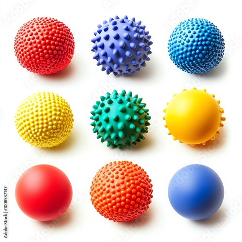 Colorful textured balls arranged in a grid, vibrant, suitable for play or decoration, white isolated background.
