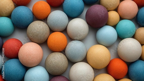 Colorful textured spheres arranged in geometric pattern, pastel and vibrant decorative balls for modern background design