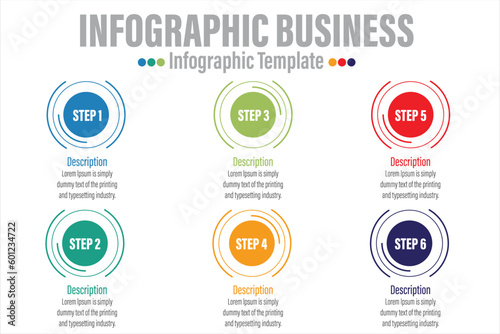 Colorful timeline infographic with Six 6 Steps, Six 6 options design template, Infographics management, finance, analytics, presentation. Vector illustration