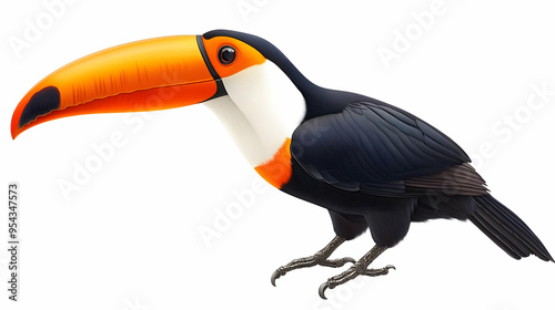 Colorful Toucan Bird with Large Beak Isolated on White Background