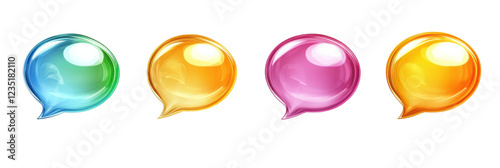Colorful transparent speech bubbles with shiny 3d effect on transparent background png