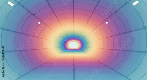 Colorful Tunnel with Rainbow Gradient in Futuristic Passageway