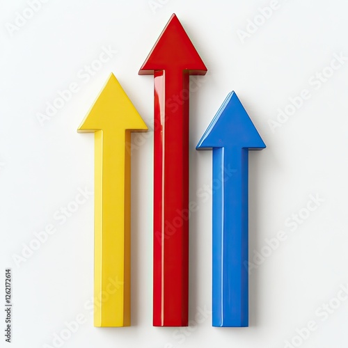 Colorful upward arrows on white background, symbolizing growth