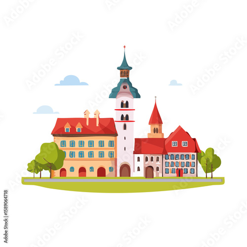 Colorful Vector Illustration of Bratislava Old Town Cityscape