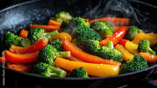 vegetable, stir fry, broccoli, bell pepper, fresh produce, cooking, health food, epicure, nourishment, culinary, organic, kitchen, vegan, vegetarian, delicious, food preparation, steam, frying pan, dining, food photography, diet, heat, healthy lifestyle, appetising, culinary arts, ingredient, cooking oil, balanced diet