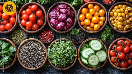vegetable, legume, salad, healthy, food, diet, nourishment, ingredient, cooking, receipe, fresh, colourful, vibrant, tomatoes, cucumber, spinach, pepper, corn, bean, lentil, seed, spice, bowl, wooden, dark, background, organic, natural, tasty, delicious, vitamin, mineral, vegetarian, vegan, healthy eating, well-being, lifestyle, clean, raw, epicure, cookery, harvest, produce, farm, market