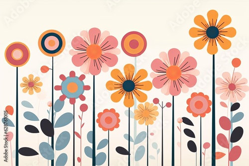 Colorful Vibrant Hand Drawn Radiant Unique Flowers Graphic Illustration Art
