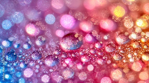 Colorful water droplets, bokeh effect, vibrant background, abstract art