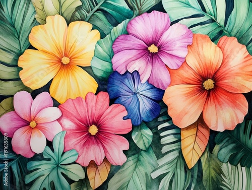 watercolor, floral, flower, leaf, colourful, illustration, home decor, greeting card, botanical, nature, artistic, vibrant, decorative, design, painting, florals, greenery