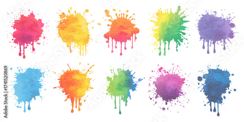 Colorful watercolor paint brush set on a white background. Isolated white background set with modern watercolor stains.