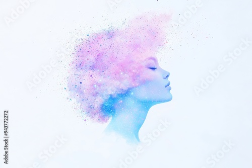 Colorful watercolor profile of woman made from paint splashes on white background Concept art idea for creativity, inspiration, and imagination Stock Illustration