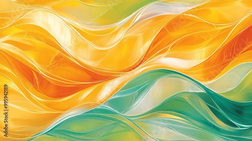 Colorful waves of yellow and turquoise flow smoothly on the canvas