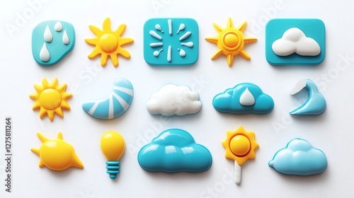 weather, icon, sun, cloud, raindrop, snow, wave, light bulb, design, graphic, illustration, digital, background, vector, bright, cheerful, nature, season, forecast, decoration, creative, education, clip art, flat, symbol, concept, digital artwork, atmospheric, joyful, aesthetic, meteorology, cute, colourful, playful, animation, fun, seasonal, artistic, vibrant, modern, simple, element, shape, imagery, artwork, visual