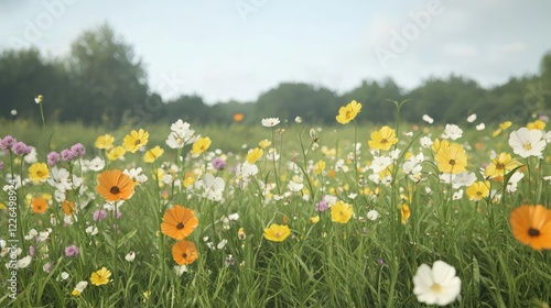 Colorful wildflowers bloom in a summer meadow, creating a serene nature scene perfect for greeting cards