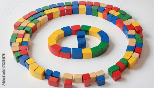Colorful Wooden Blocks Circle on White Background