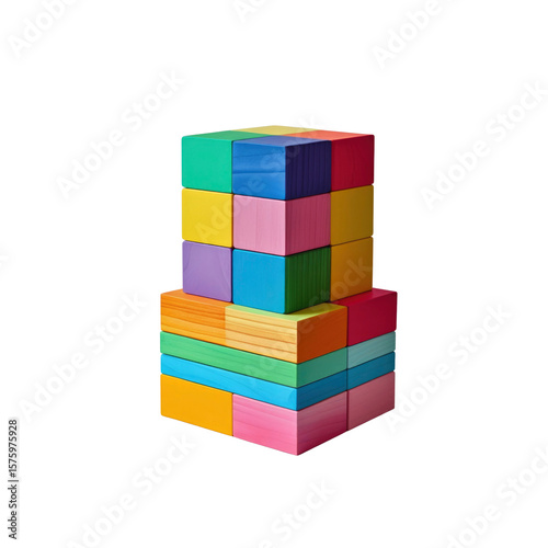 Colorful Wooden Blocks Stacked in a Creative Formation