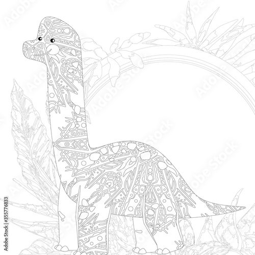 Coloring book for children with a dinosaur in cartoon style, tyrannosaurus