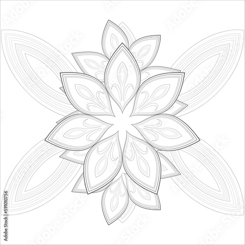 Coloring page for adult with decorative flowers in monochrome isolated on white background