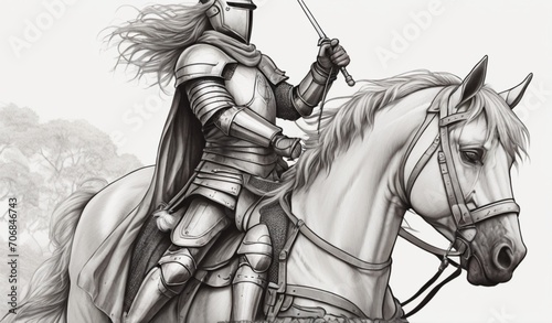 coloring page, knight, anime, line art, simple details, simple line art, one line, clean and minimalistic lines, minimalism, line drawing style, white background from AI Generative