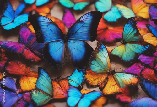 Colors of rainbow Bright colorful tropical morpho butterflies Color concept Bright tropical backgrou