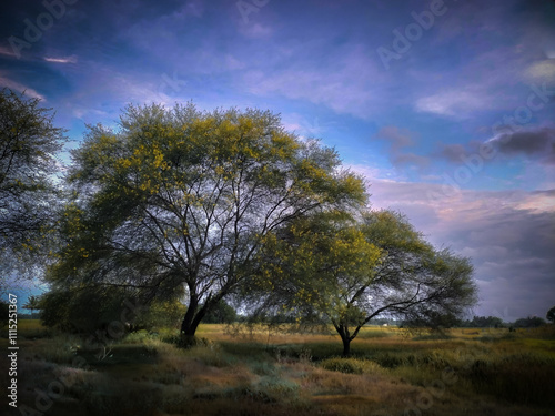 Colourful sky with trees
