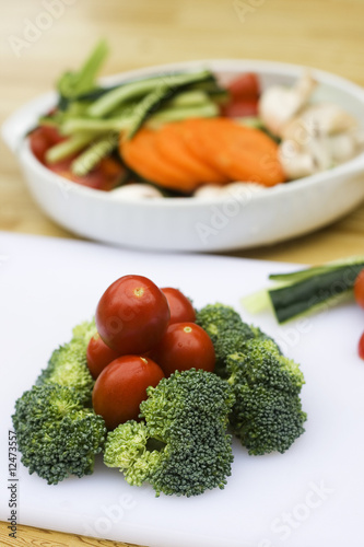 vegetable, broccoli, tomatoes, healthy, food, lifestyle, fresh, green, red, kitchen, clean, fitness, natural, carrot, chopping, diet, health, tasty, good, delicious, mushroom, raw, nature, tomatoes, organic, white, vitality, freshness, zest, skill, design, cucumber, circle, cut, prepare, prepared, vitamin, vitamin, salad, cook, meal, board, wood, snack