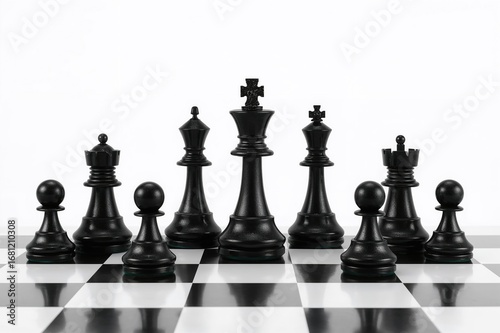 chess, background, business, isolated, white, sport, black, game, strategy, king, leisure, battle, competition, horizontal, foreground, group, image, nobody, object
